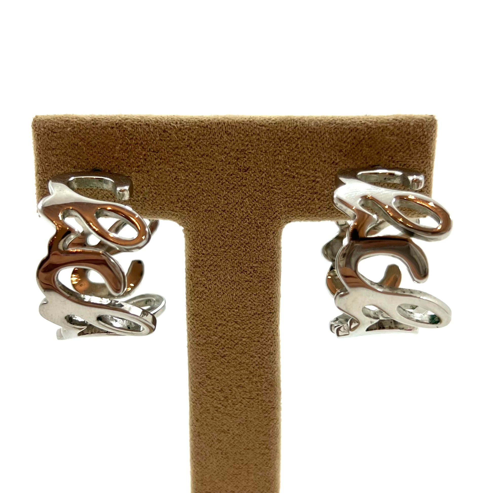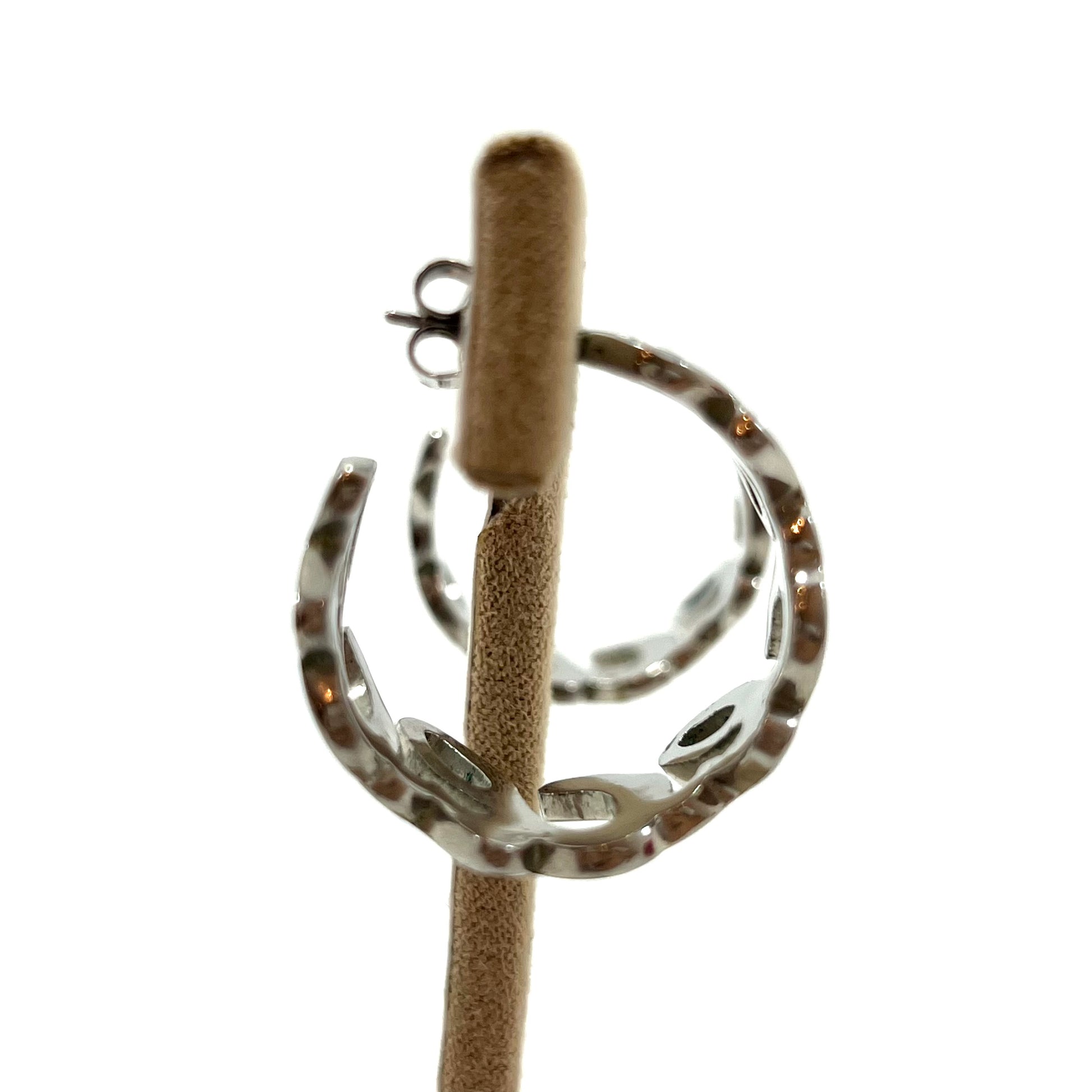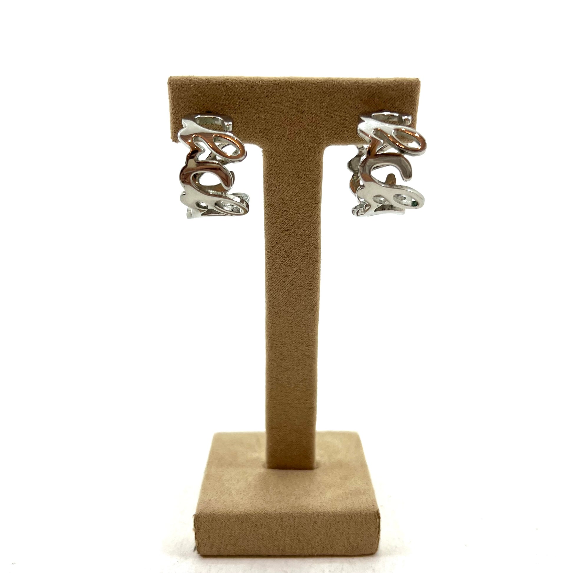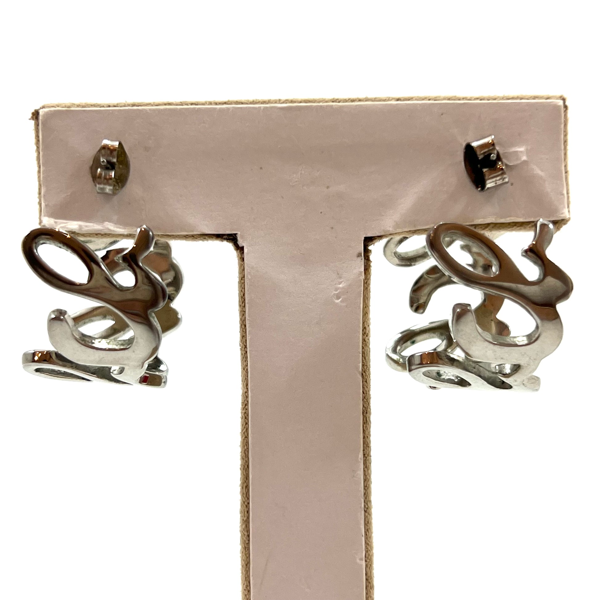 Descripción: Arracadas en color plata, con las iniciales de la marca en cursiva