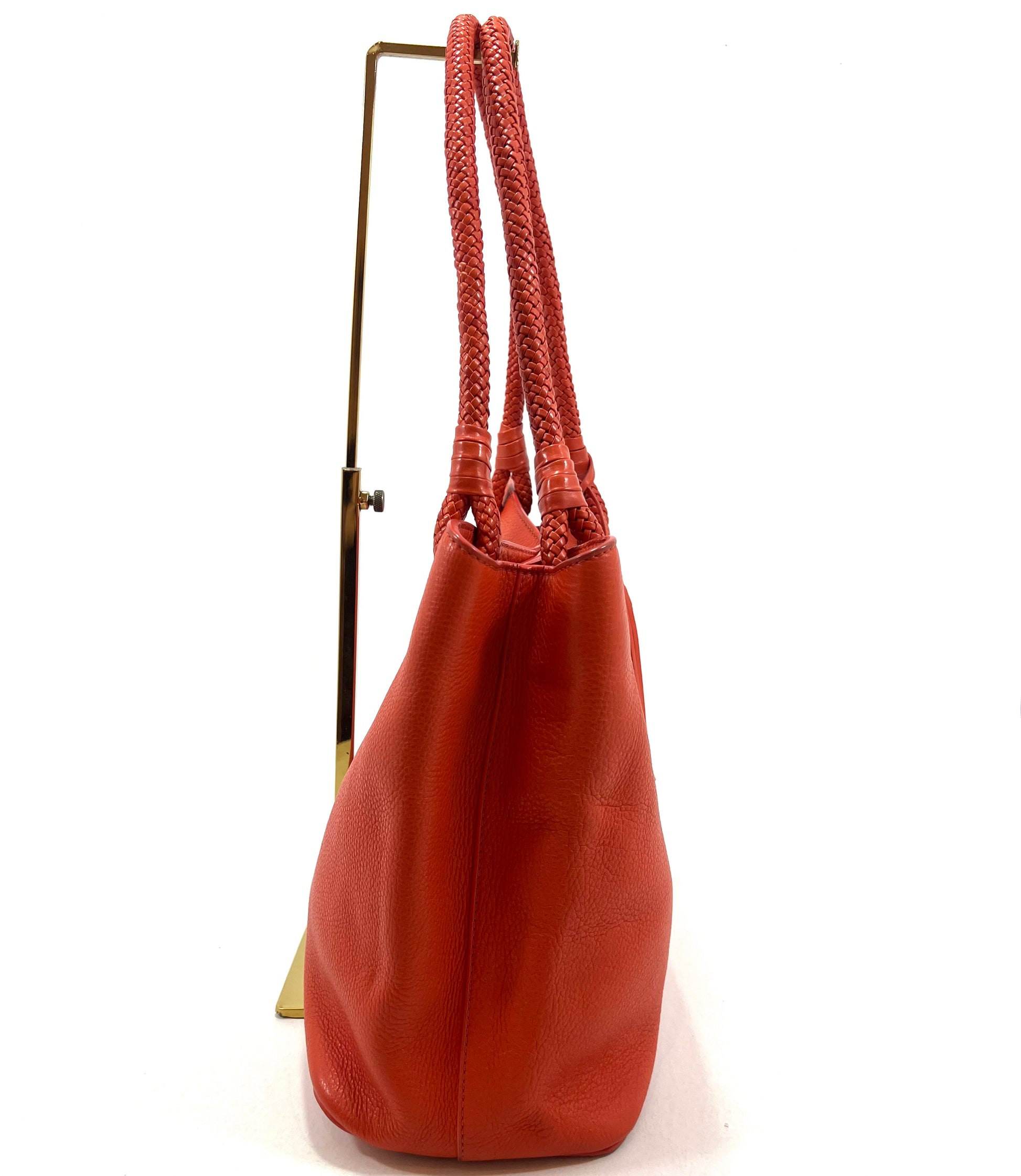 Descripción: Bolso en piel granulada en color naranja, con detalle de borla