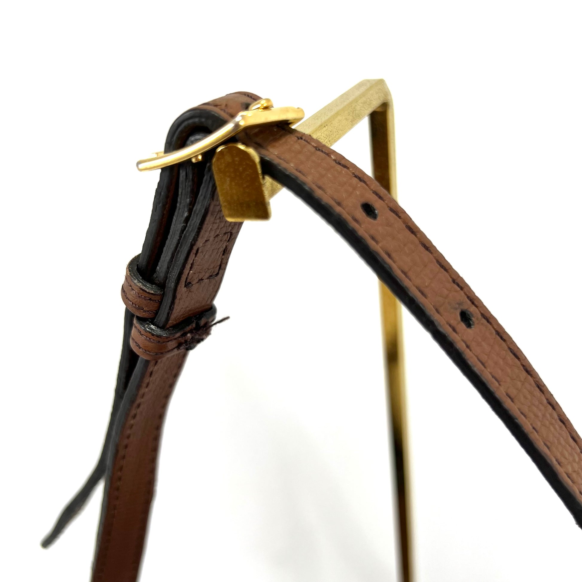 Descripción: Bolso banner mediano en piel color camel, con detalles de monogram burberry check a los costados; con strap