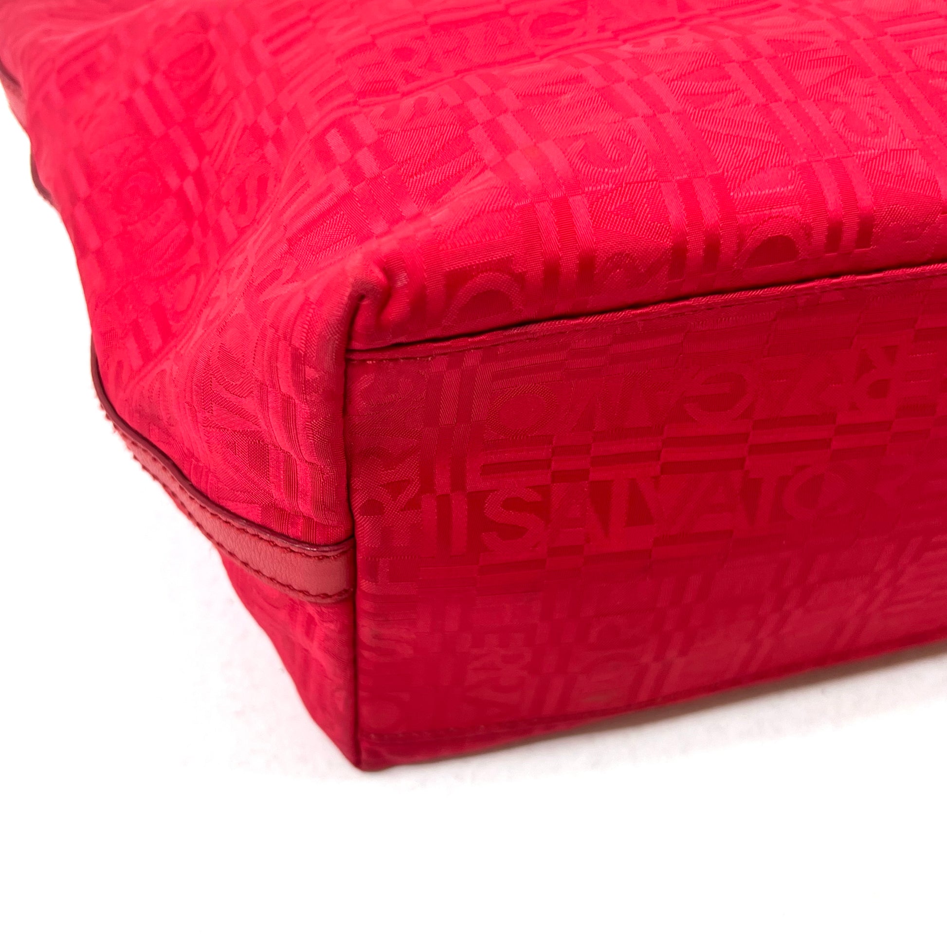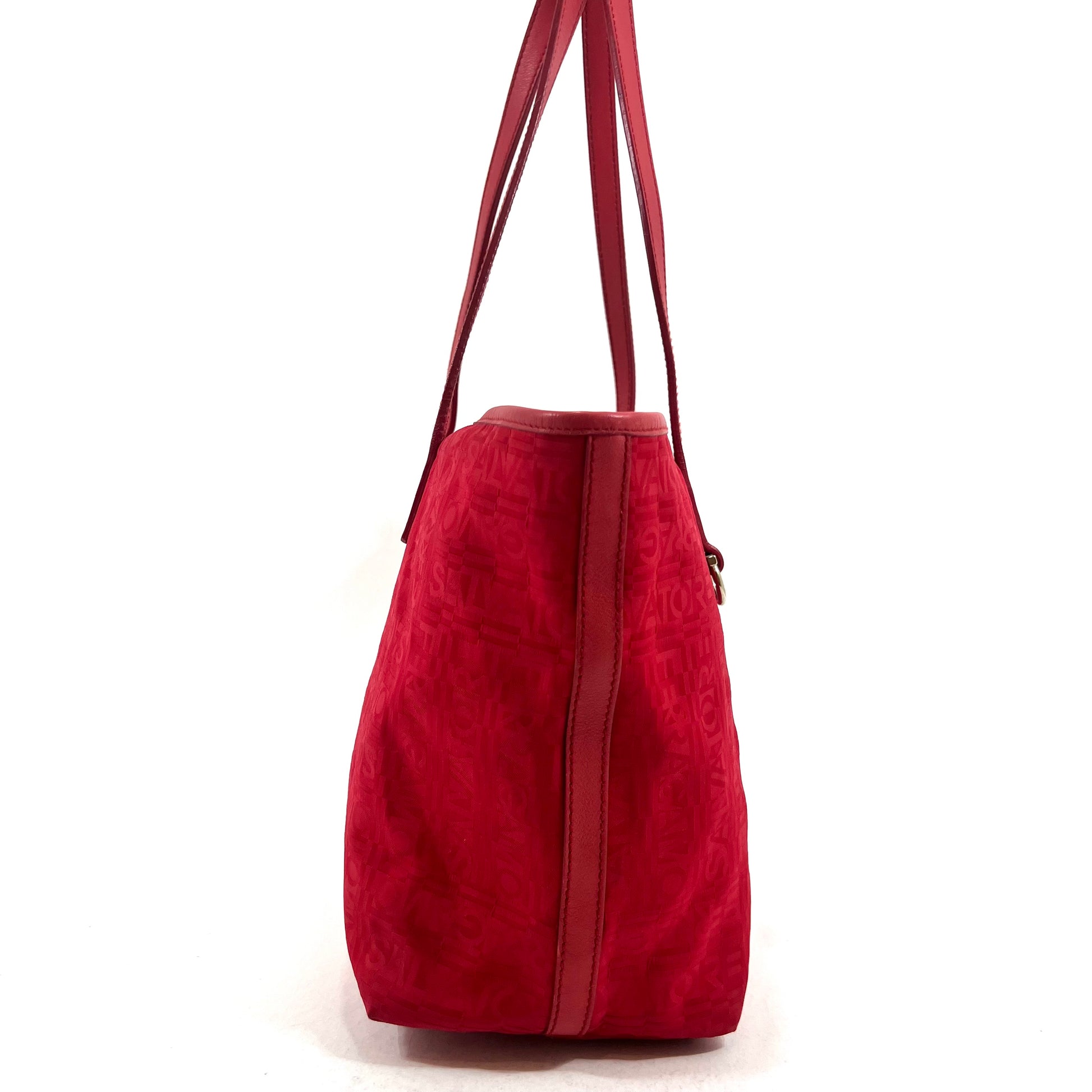 Descripción: BOLSO TOTE EN CANVAS CON MONOGRAM DE LA MARCA EN COLOR ROJO