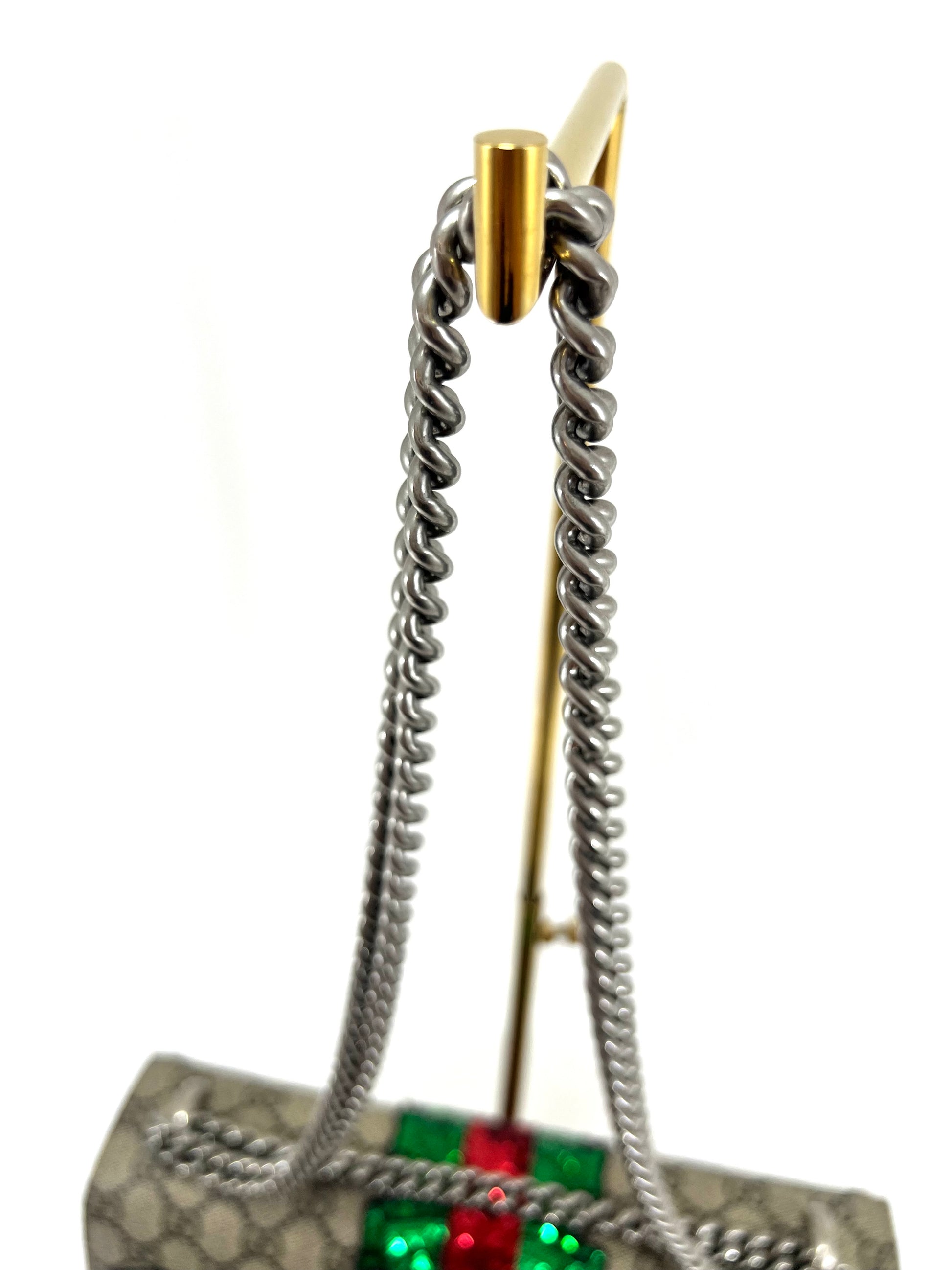 Descripción: Shoulder Bag Dionysus monogram cafe con estampados con cadena de color plata vintage