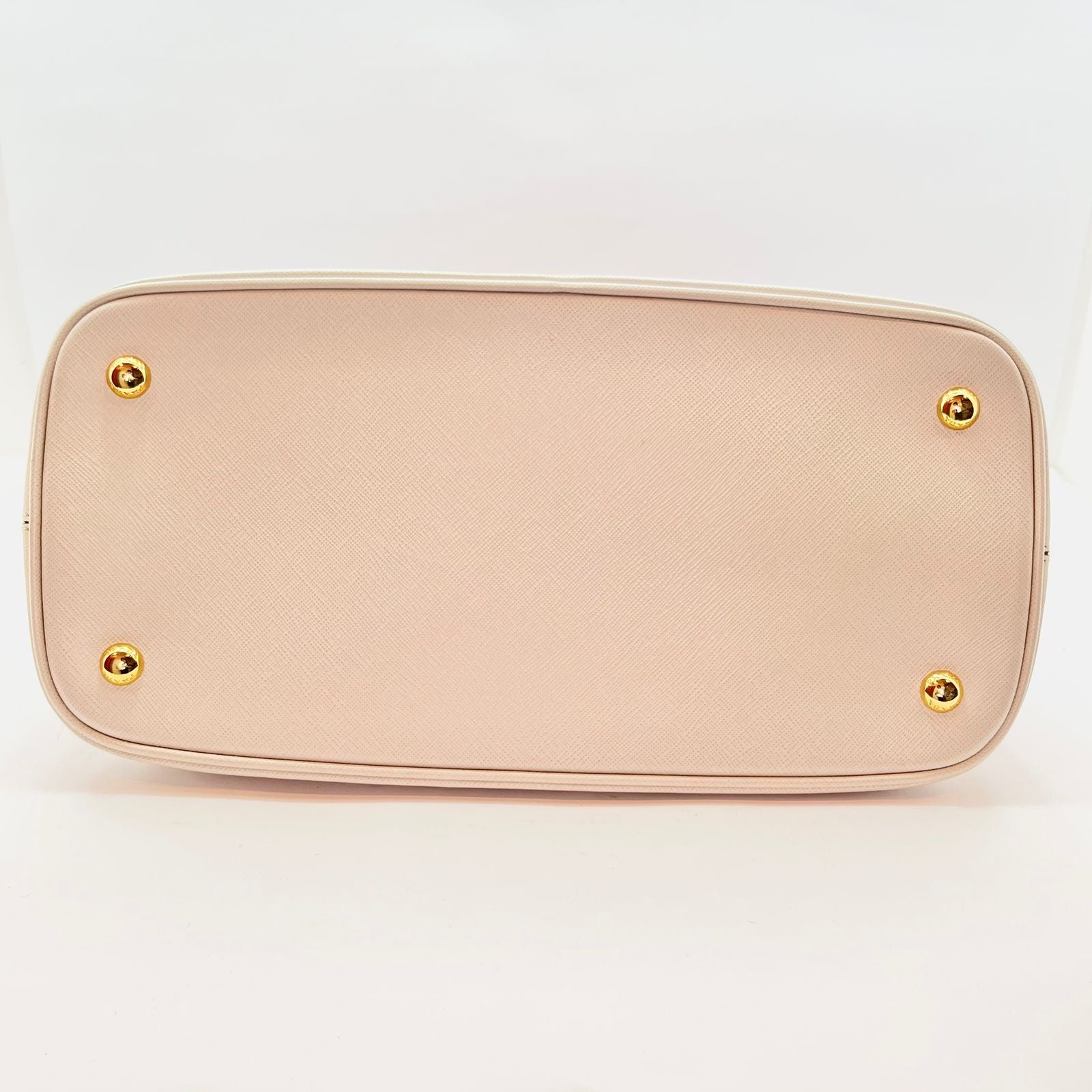Descripción: Bolso de mano dome Promenade en piel saffiano color rosa y blanco con tag