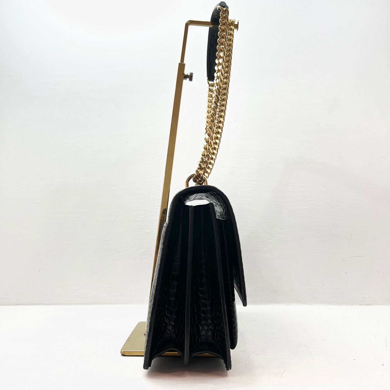 Descripción: Bolso Shoulder Back, modelo Sunset en piel color negro, con textura en piel exótica con tag