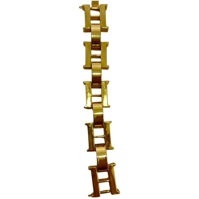 Descripción: Brazalete de acero, color dorado de eslabones de las iniciales de la marca