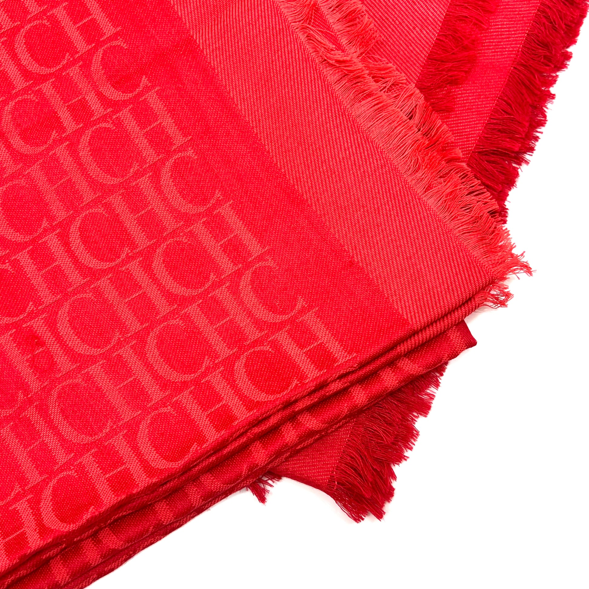 Descripcion: Chal color rojo con iniciales de la marca