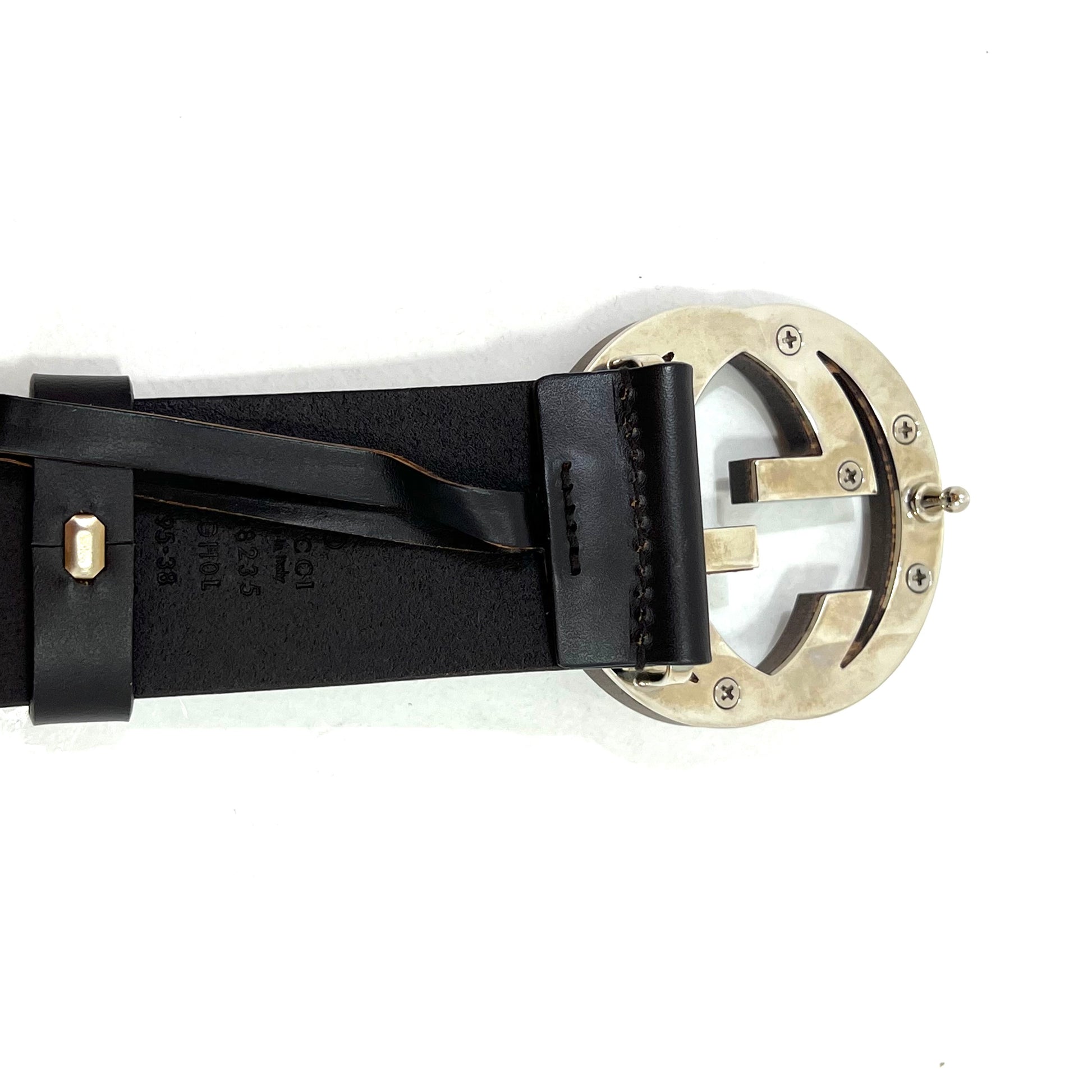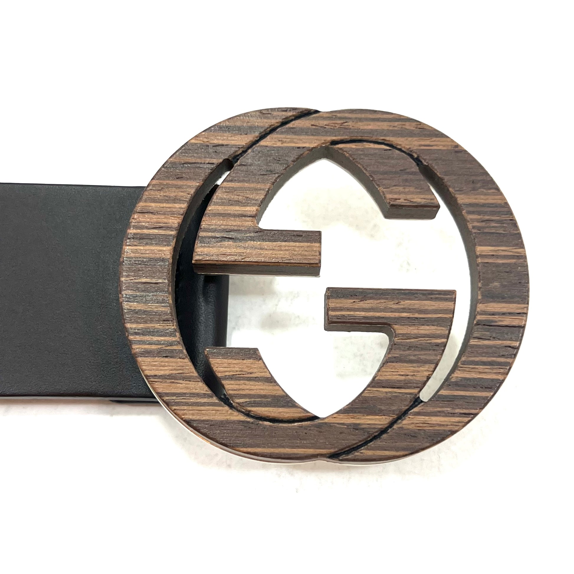 Descripción: Cinturón en piel color chocolate con hebilla interlocking de madera