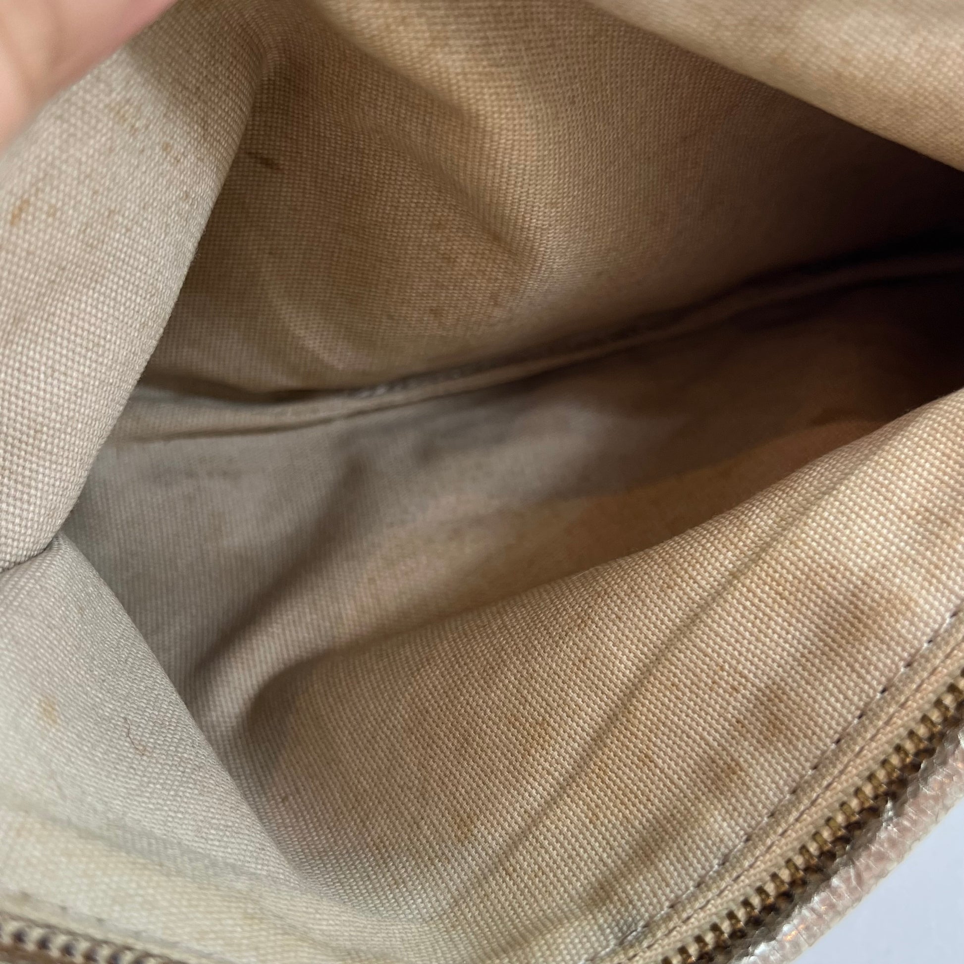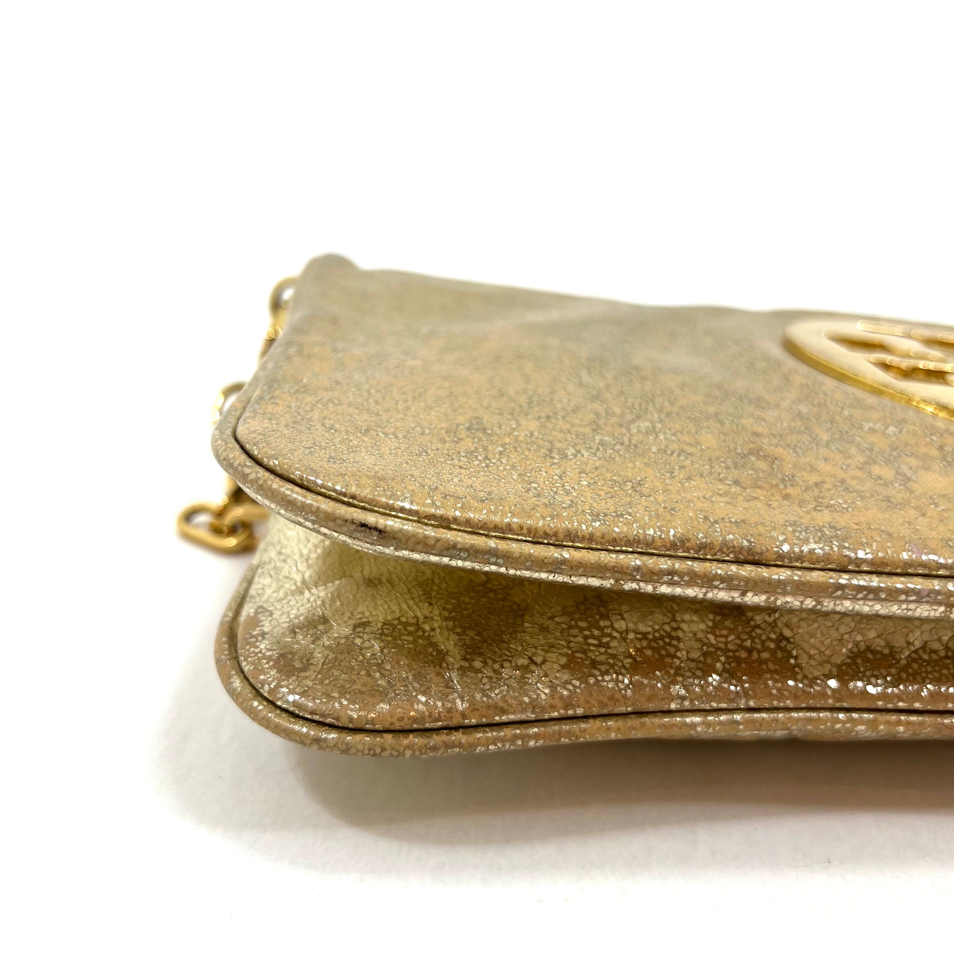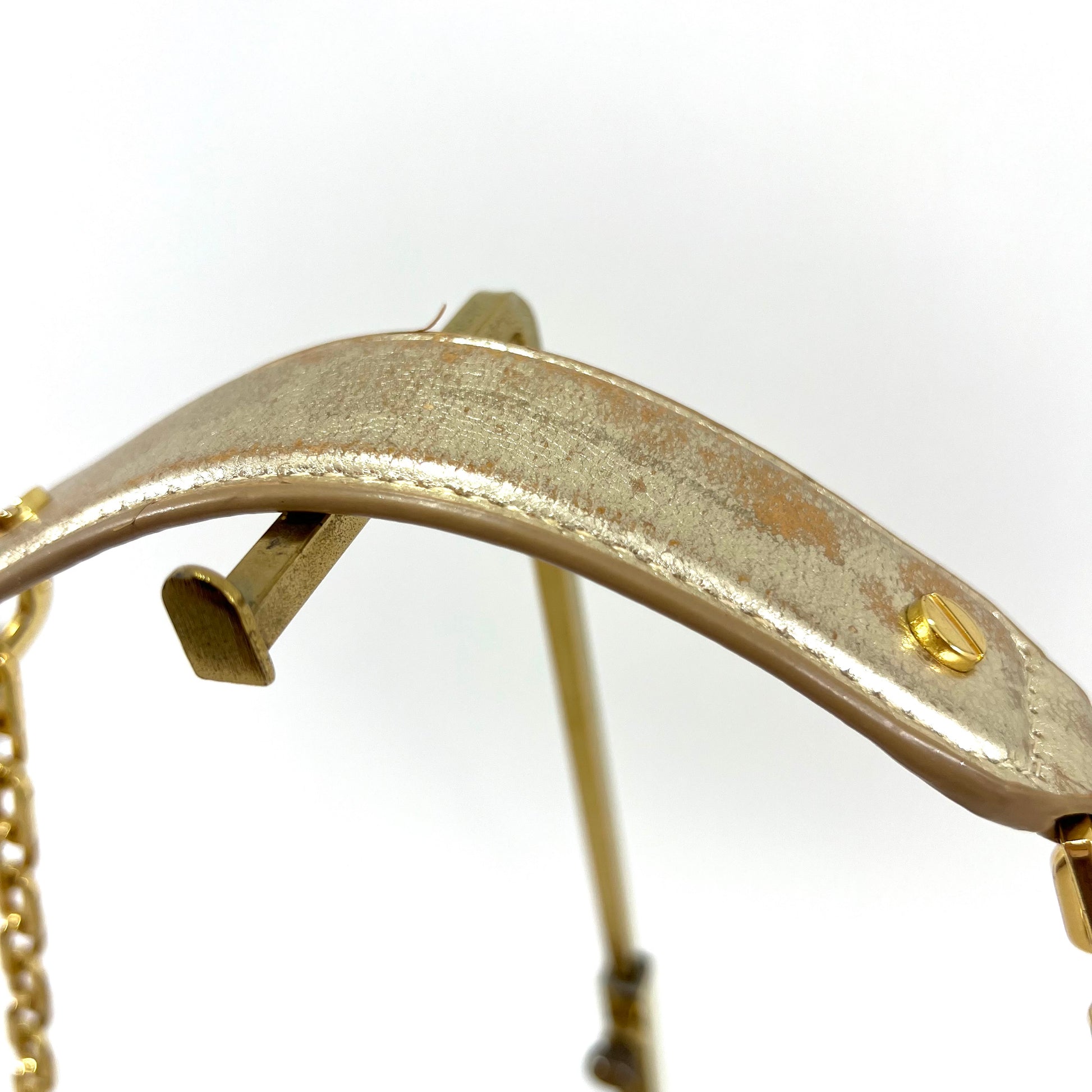 Descripción: Shoulder bag en piel en color dorado con placa de la marca con Strap