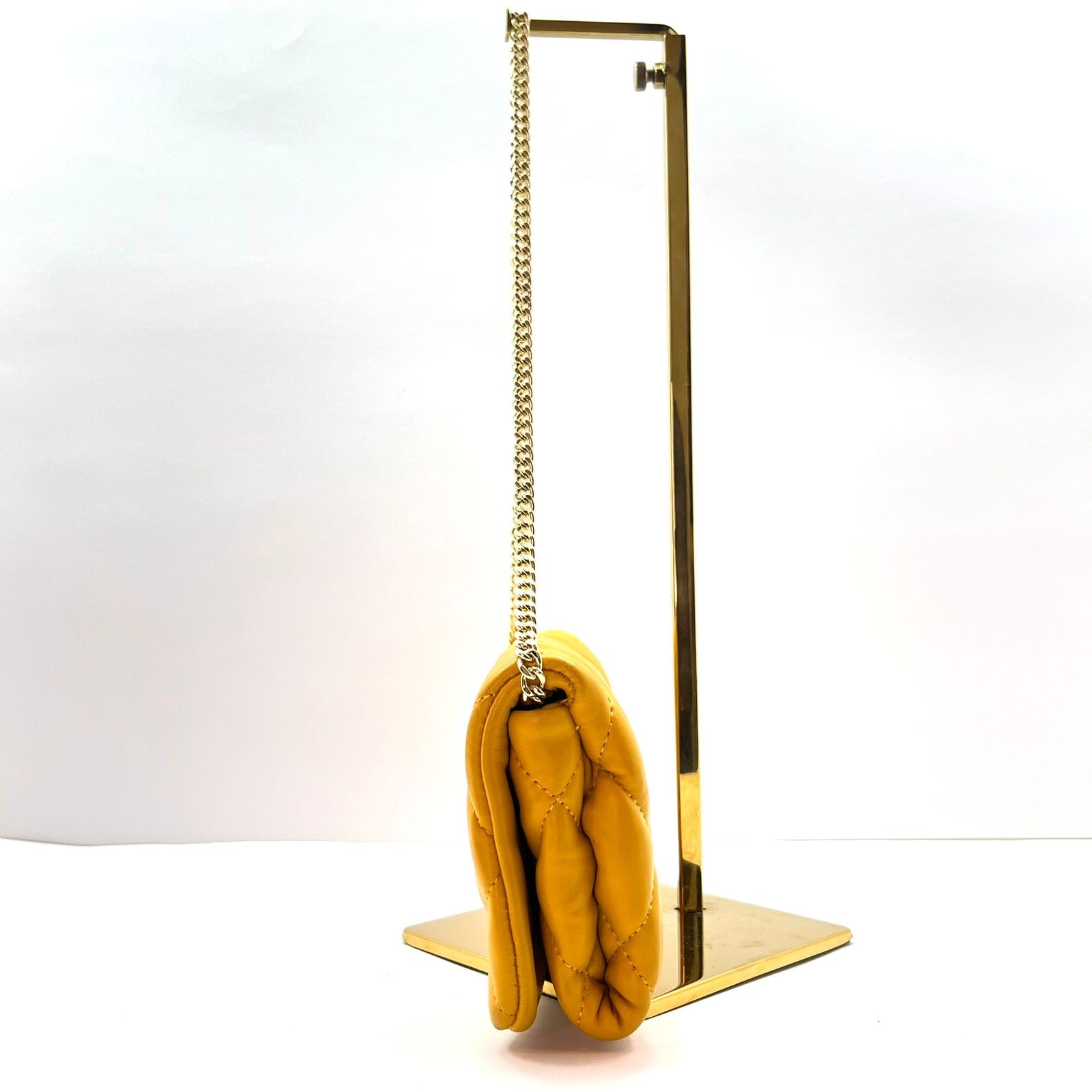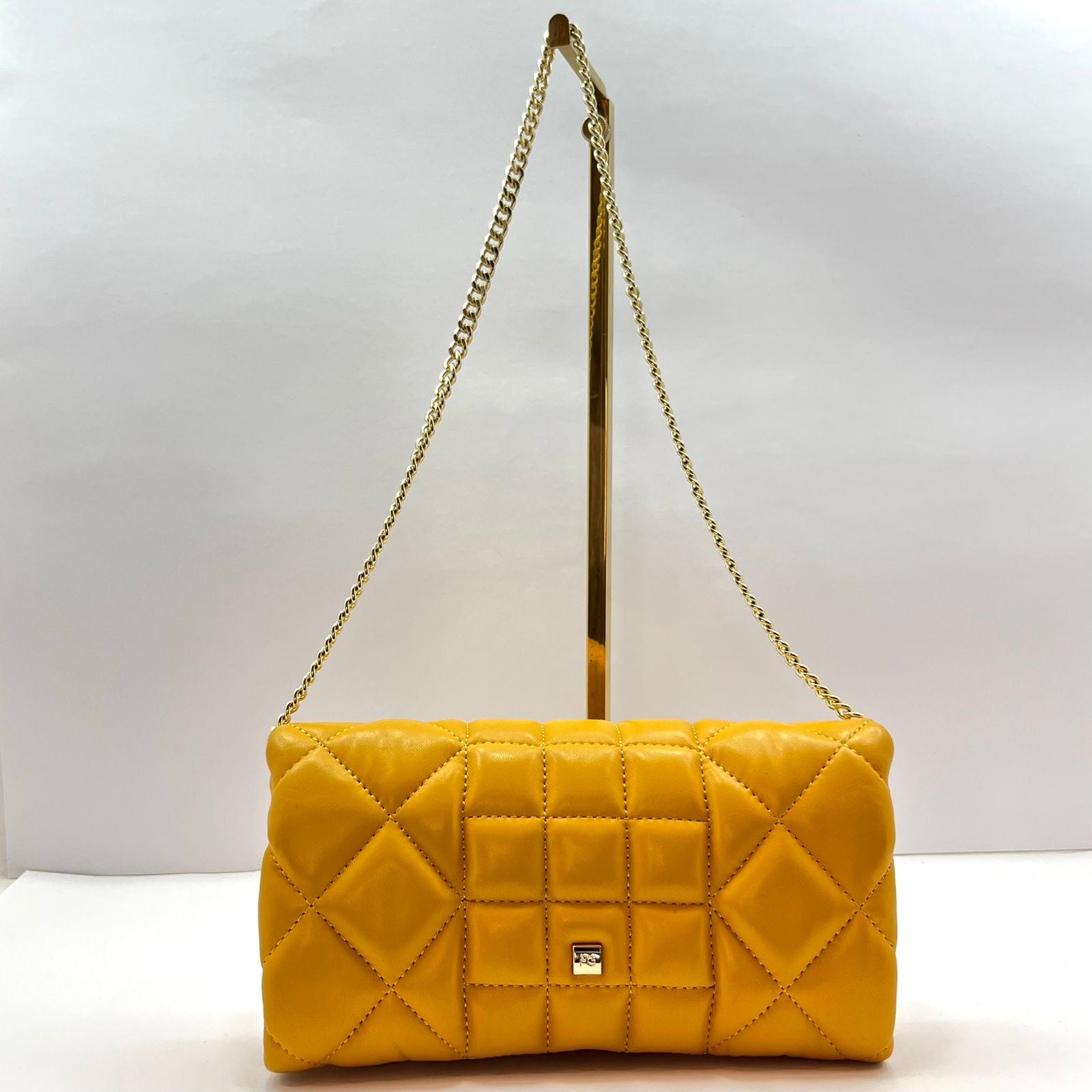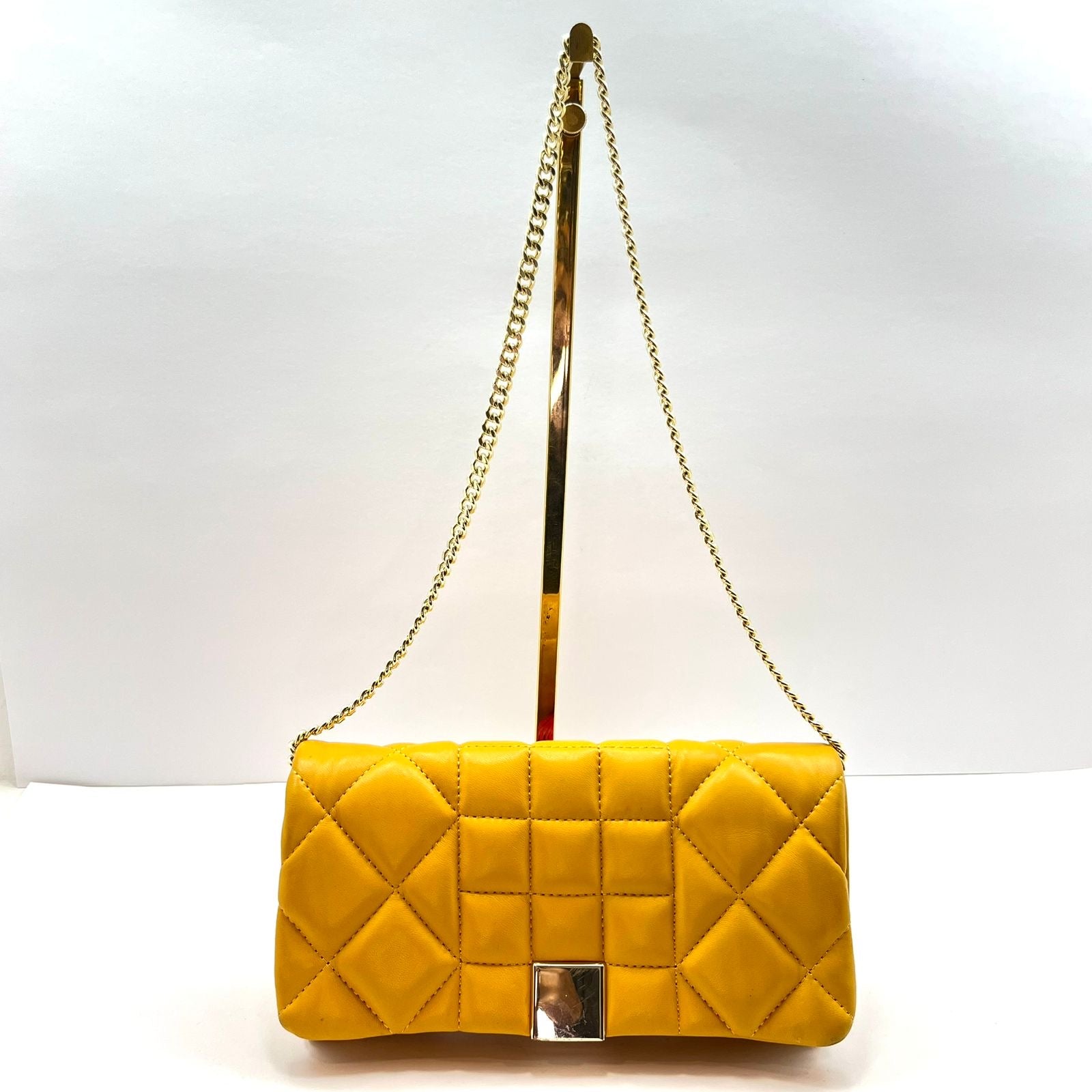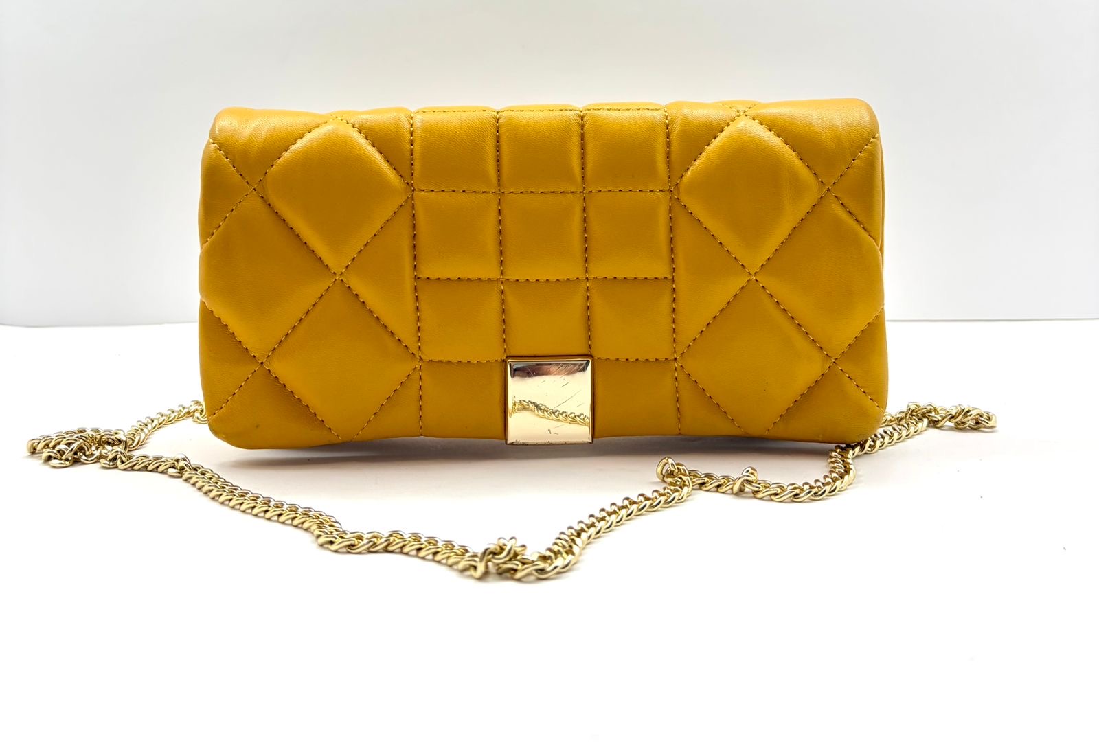 Descripción: Clutch en piel acolchada color amarillo con Cadena