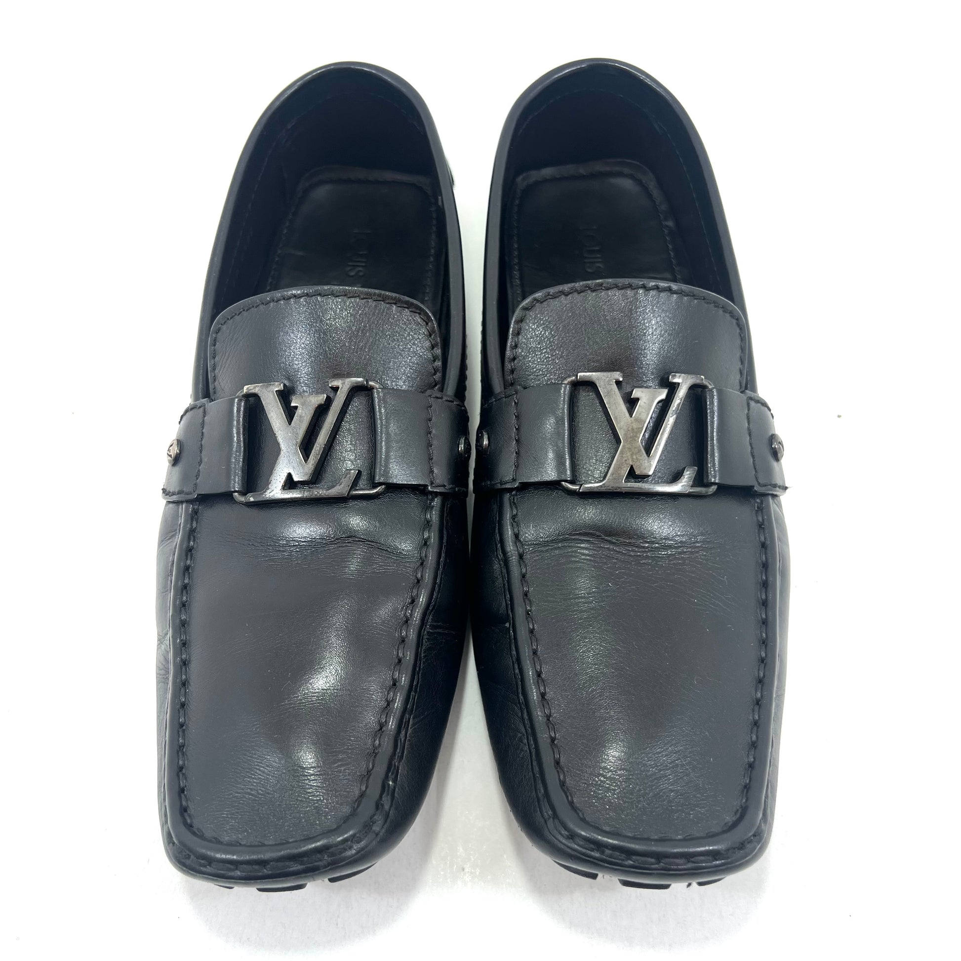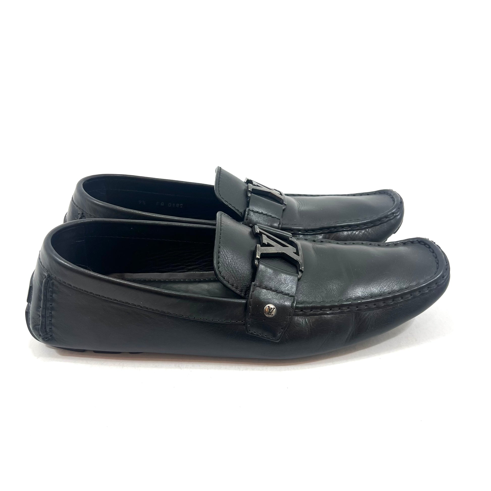 Descripción: mocasines LV Montecarlo de piel color negro con hebilla con las iniciales de la marca