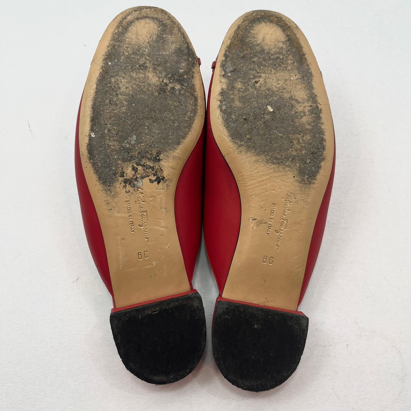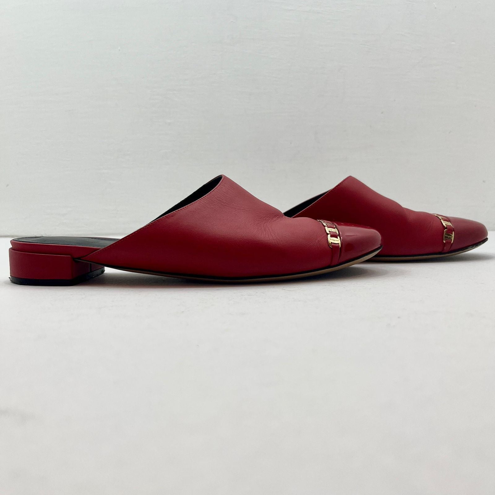 Descripción: Slippers/ Mules ferragamo de piel color rojo con terminado de punta acharolado.