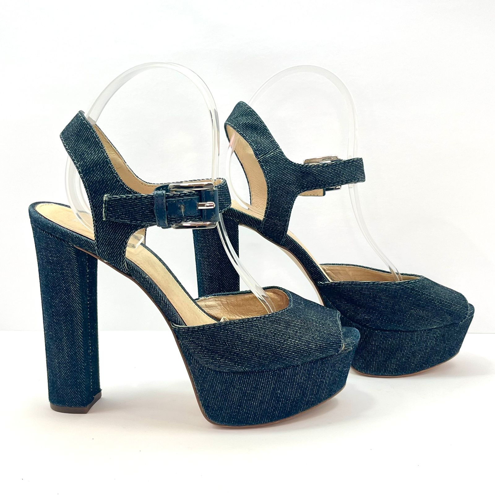 Descripción: Plataformas tipo peep toe denim