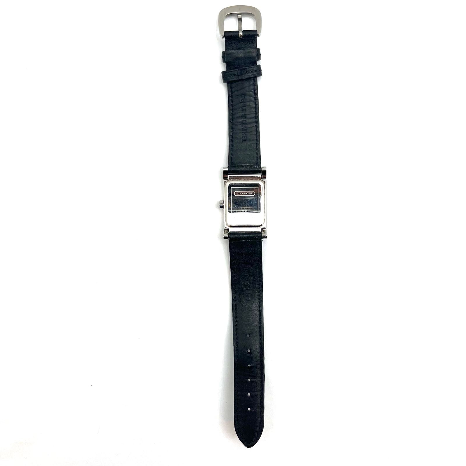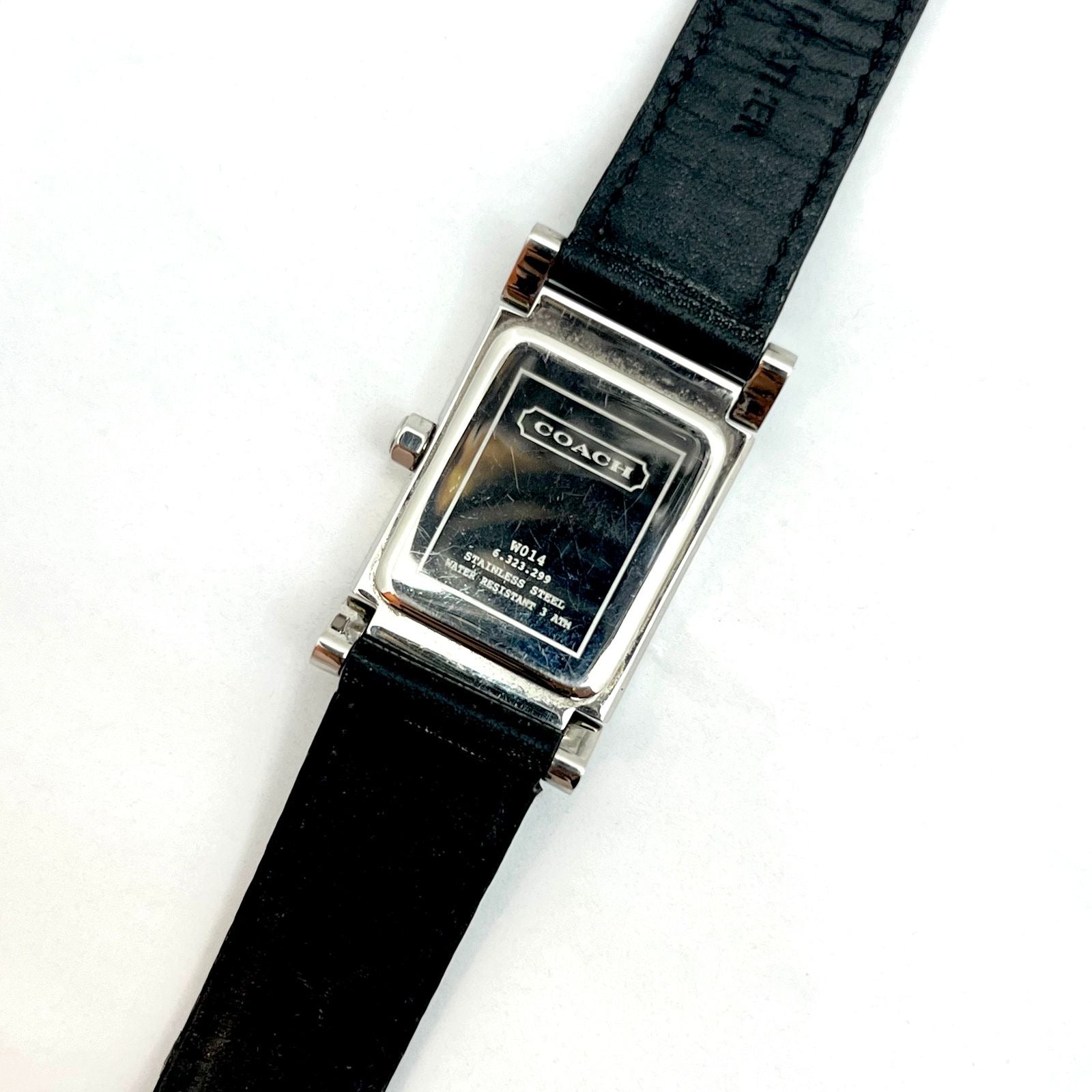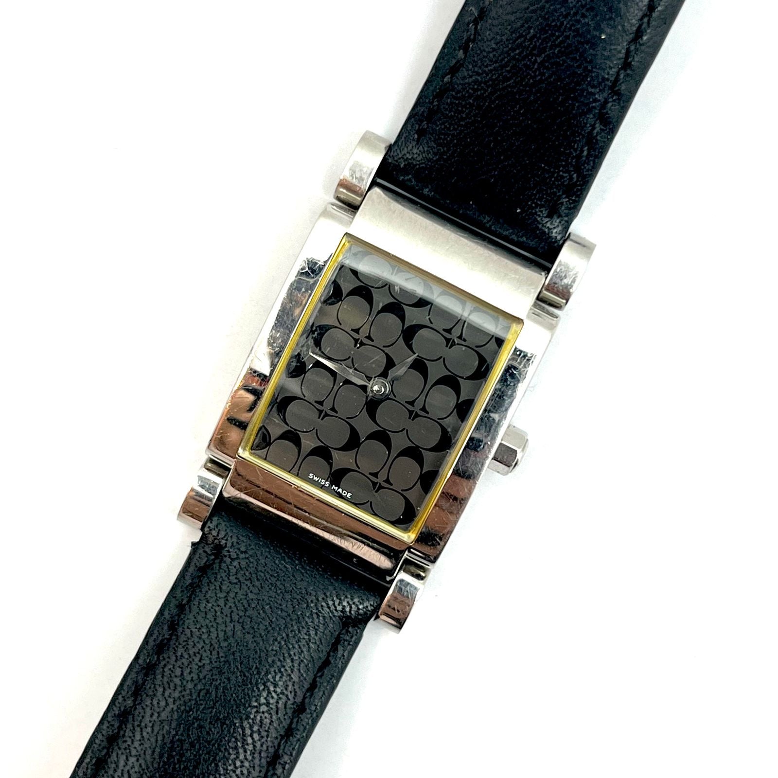 Descripción: Reloj con extensible en piel color negro, con esfera rectangular de acero, inoxidable y monograma de la marca