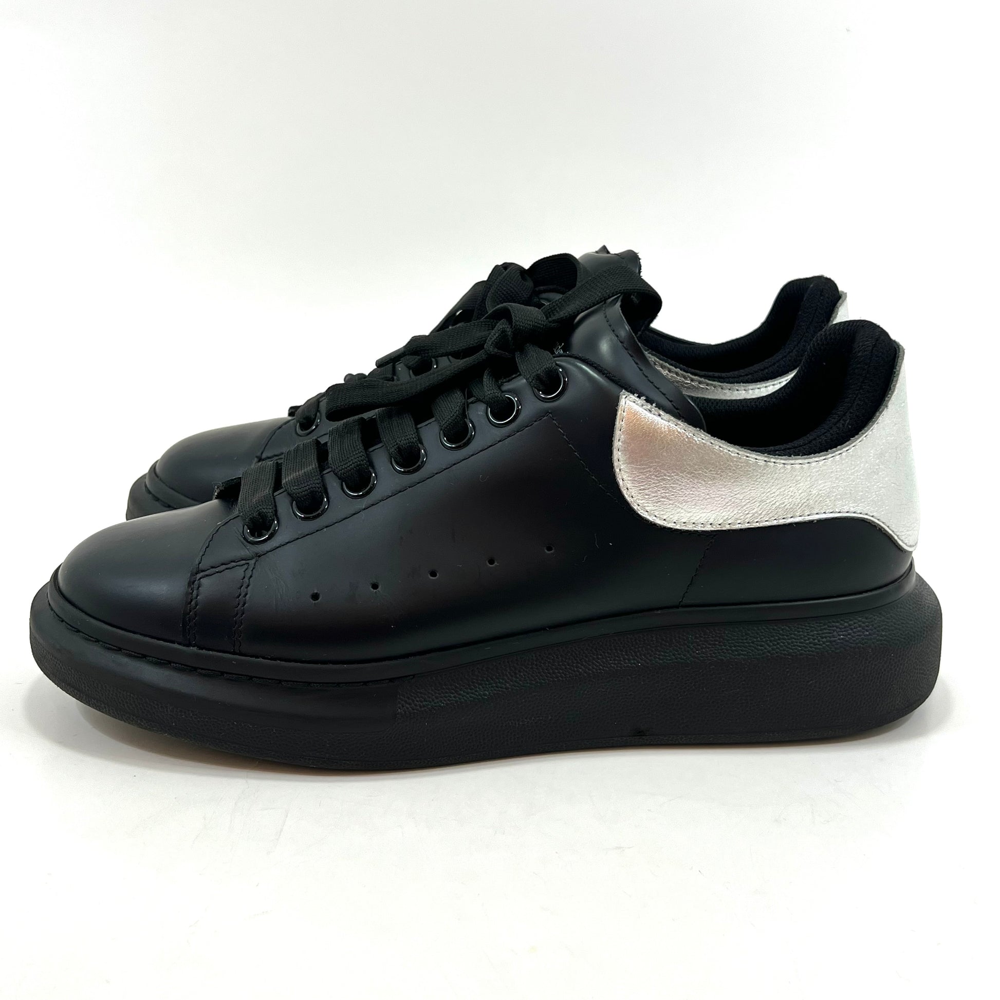 Descripción: Tenis en piel color negros con detalle en el talon de color plateado