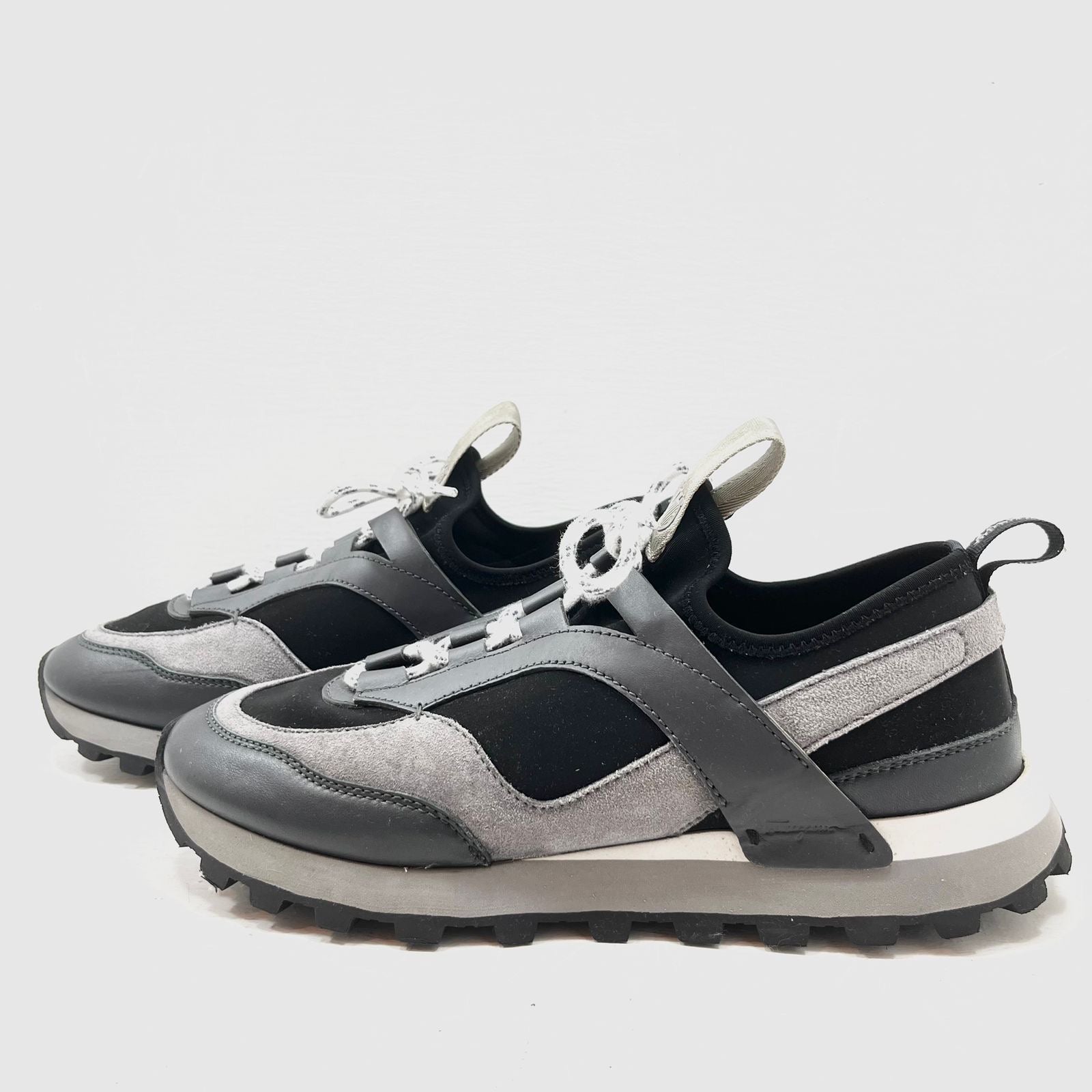 Descripción: Tenis indy slip-on en piel color gris y detalles en suede