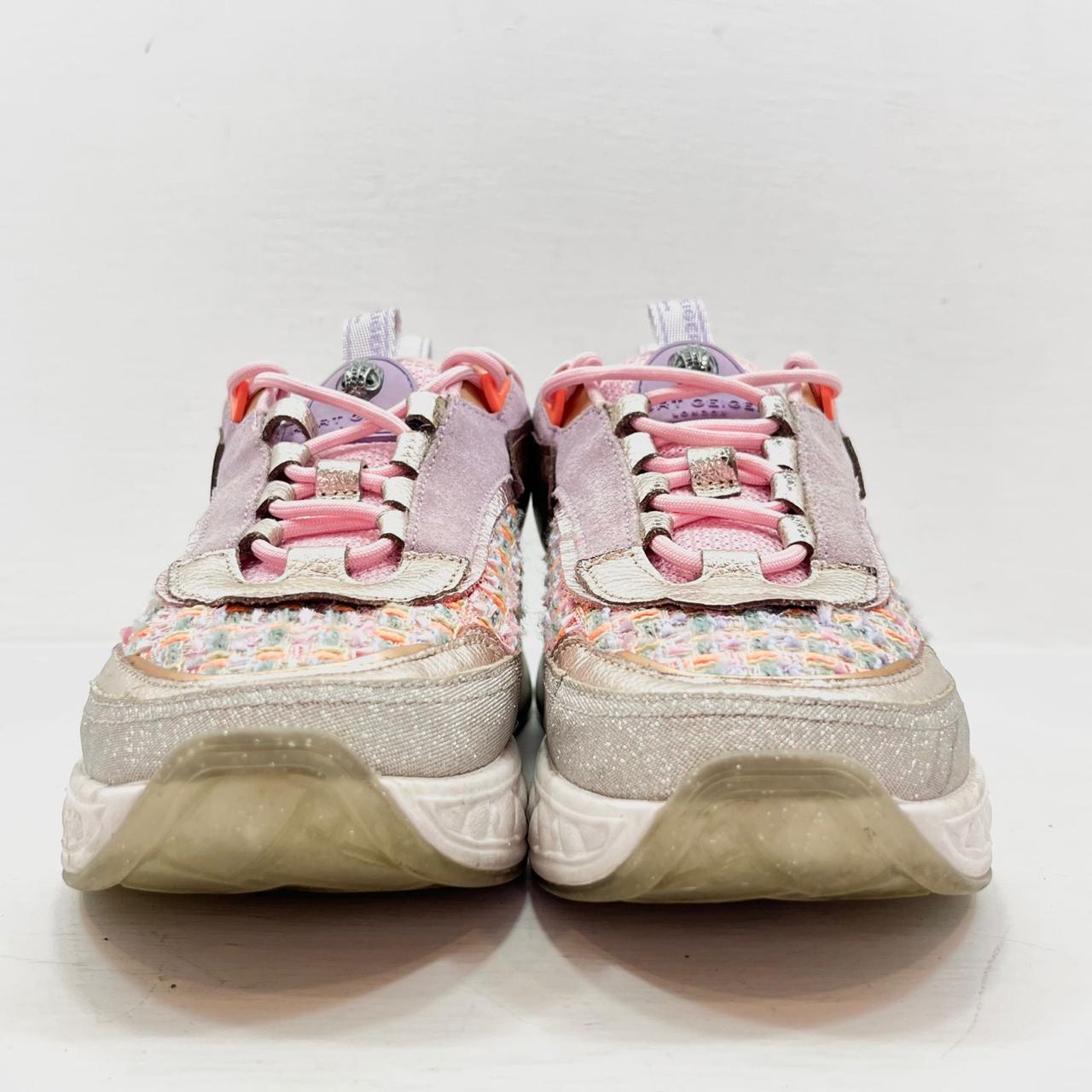 Descripción: Tenis kensington en tweet con detalles en rosa, gris y naranja