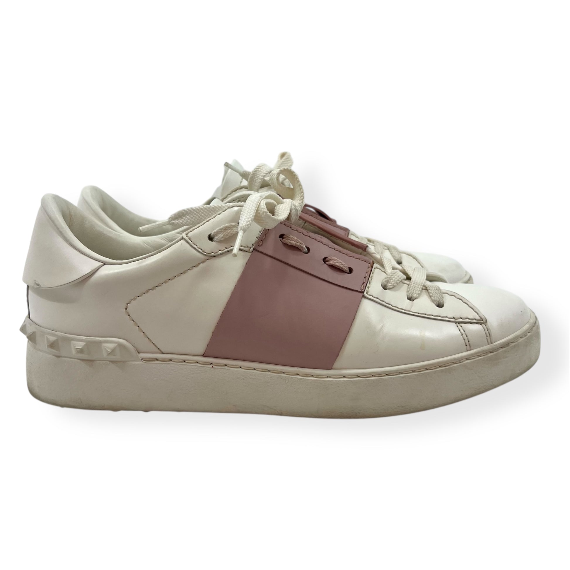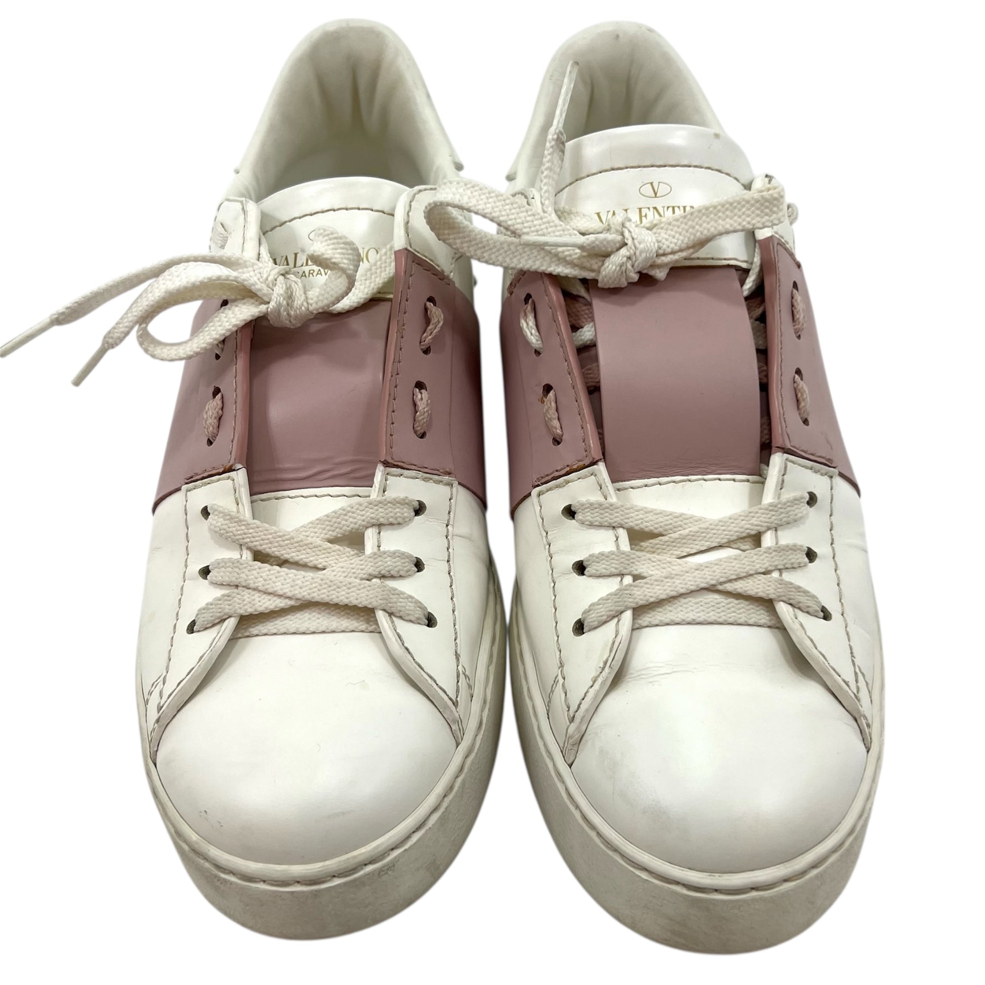 Descripción: tenis rockstud en piel blancos con detalle en color rosa