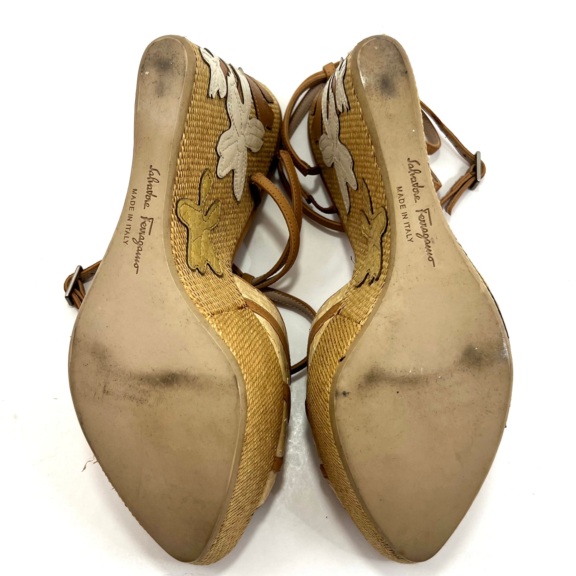 Descripción: Wedges en tiras en piel color beige/cafe con estampado de flores en el tacon